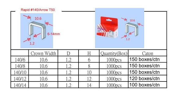 Rapid 140 ,Arrow T50 ,Novus type 11 ,Stanley TRA700 Series