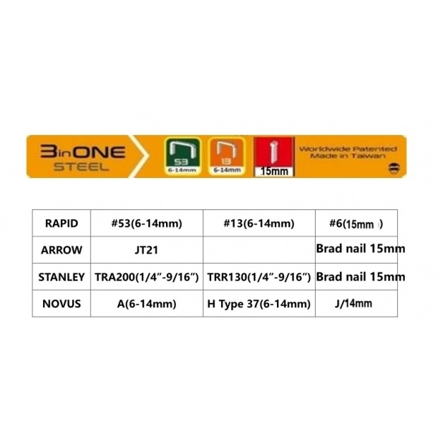 * For staples (Arrow JT21, Rapid 53/13 and Brad nail)